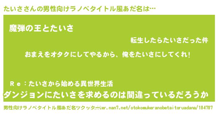 | 女子向けラノベタイトル風あだ名 | 『たいさ恋絵巻』『たいさは平凡を望む』 |