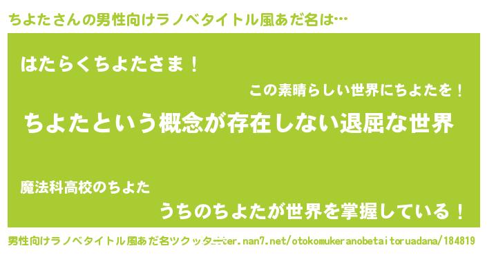 | 女子向けラノベタイトル風あだ名 | 『ちよたの契約王妃』 |
