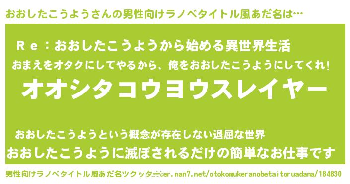 | ヘコむあだ名 | 『おおしたこうよう(笑)』『なまこ酢』 |