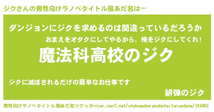 | 意味不明あだ名 | 『自称ジク』『とにかく怪しいジク』 |