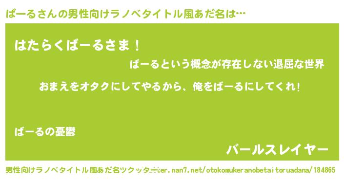 | 女子向けラノベタイトル風あだ名 | 『ばーる恋絵巻』『首の姫と首なしばーる』 |