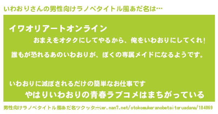| 女子向けラノベタイトル風あだ名 | 『異世界でカフェいわおりを開店しました。』 |