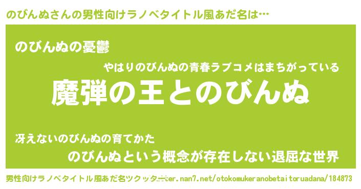 のびんぬさんの男性向けラノベタイトル風あだ名をツクッター!