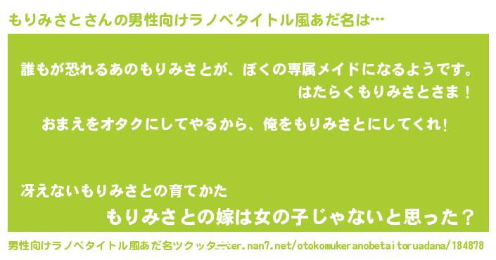 | ヘコむあだ名 | 『もりみさと(小並感)』『もりっ子』 |