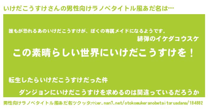 | 意味不明あだ名 | 『住所不定無職いけだこうすけ(77歳)』 |
