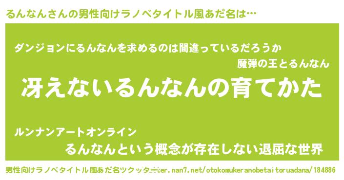 | 女子向けラノベタイトル風あだ名 | 『シンデレラるんなん家の靴箱館』 |