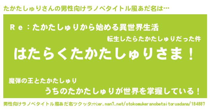 | 肩書あだ名 | 『たかたしゅりプロデューサー』 |