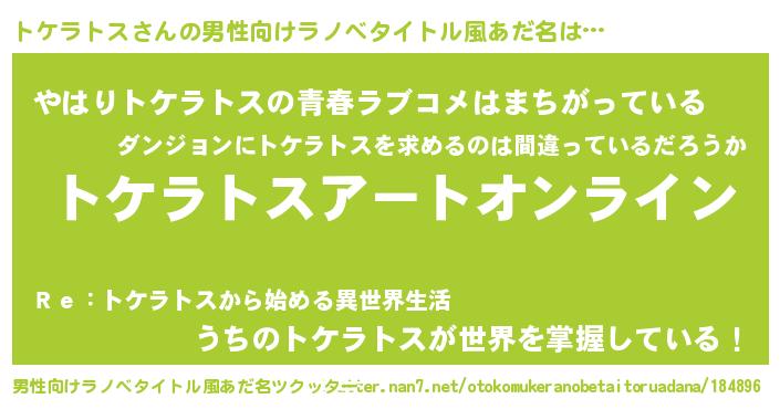| 意味不明あだ名 | 『ペロリントケラトス』『自称トケラトス』 |