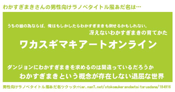 | 女子向けラノベタイトル風あだ名 | 『わかすぎまき姫と円卓の騎士』 |