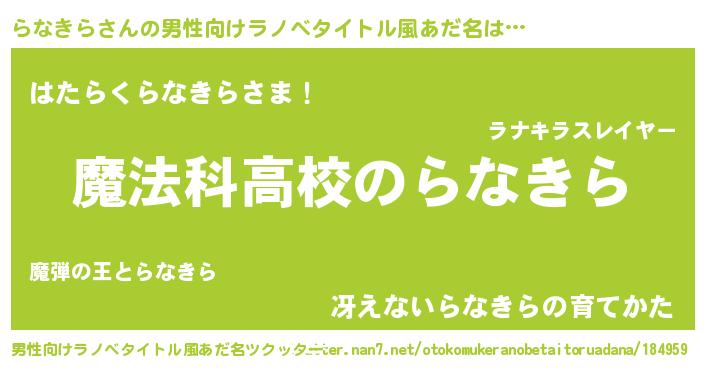 | 女子向けラノベタイトル風あだ名 | 『らなきらなんてお断りですっ。』 |