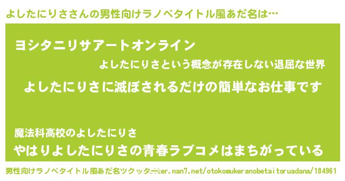 | 胡散臭い通販商品みたいなあだ名 | 『億万長者になれる霊験あらたかなお札…その名も「よしたにりさ」』 |