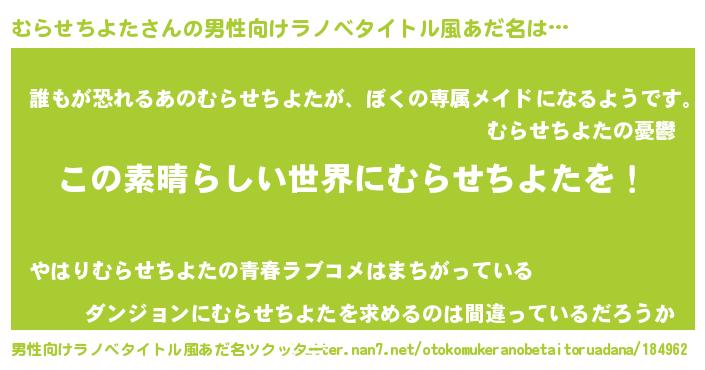 | 意味不明あだ名 | 『住所不定無職むらせちよた(12歳)』 |