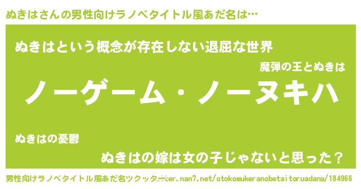 | 女子向けラノベタイトル風あだ名 | 『ぬきは恋絵巻』『ぬきは様がみてる』 |
