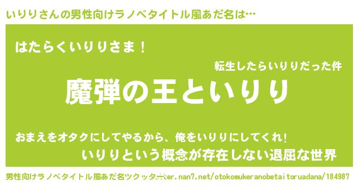 | 意味不明あだ名 | 『住所不定無職いりり(65歳)』 |