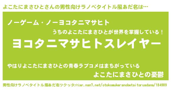 | 肩書あだ名 | 『よこたにまさひと上級大将』 |