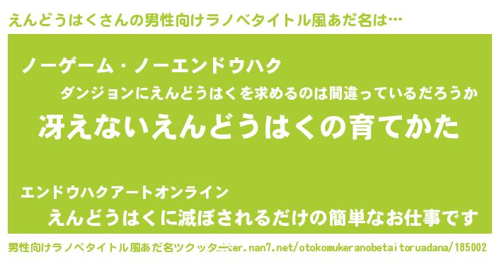 | 女子向けラノベタイトル風あだ名 | 『シンデレラえんどうはく家の靴箱館』 |
