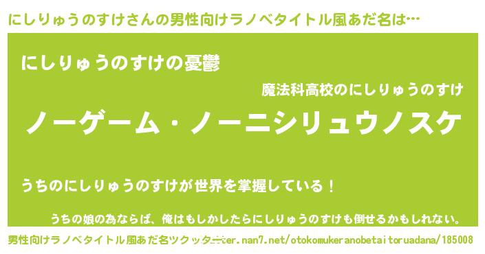 | 女子向けラノベタイトル風あだ名 | 『にしりゅうのすけ恋絵巻』 |