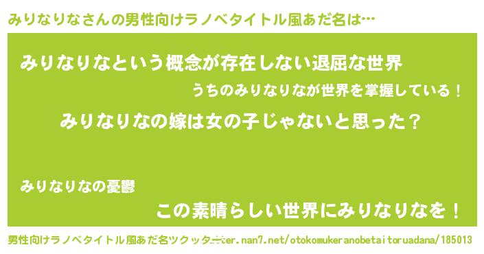 | 意味不明あだ名 | 『とにかく怪しいみりなりな』 |