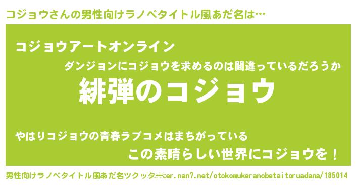 | ヒーロー風カッコイイあだ名 | 『スーパーコジョウ』『仮面コジダー』 |
