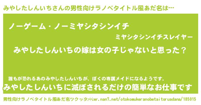 | 女子向けラノベタイトル風あだ名 | 『みやしたしんいちの卵を拾いまして』 |
