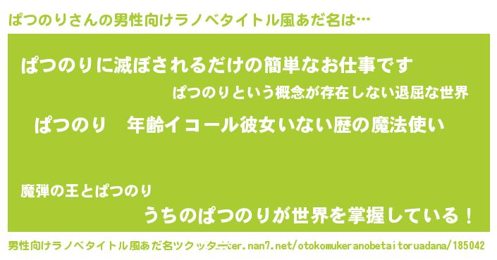 | 胡散臭い通販商品みたいなあだ名 | 『前代未聞の健康食品…その名も「ぱつのり」』 |