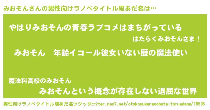 | 女子向けラノベタイトル風あだ名 | 『みおそんの玉の輿計画!』 |