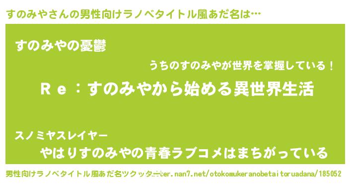 | 肩書あだ名 | 『すのみや総統』『すのみや御曹司』 |