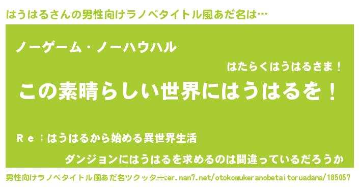 | 意味不明あだ名 | 『住所不定無職はうはる(2歳)』 |