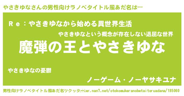 | 意味不明あだ名 | 『住所不定無職やさきゆな(11歳)』 |