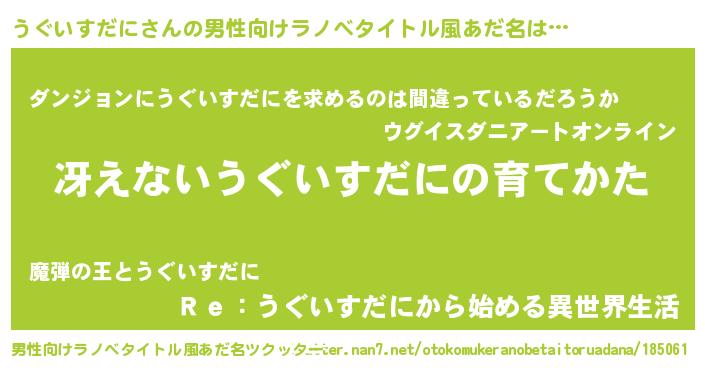| ヒーロー風カッコイイあだ名 | 『幻影騎士ウグ』『スーパーウグイスダニ』 |