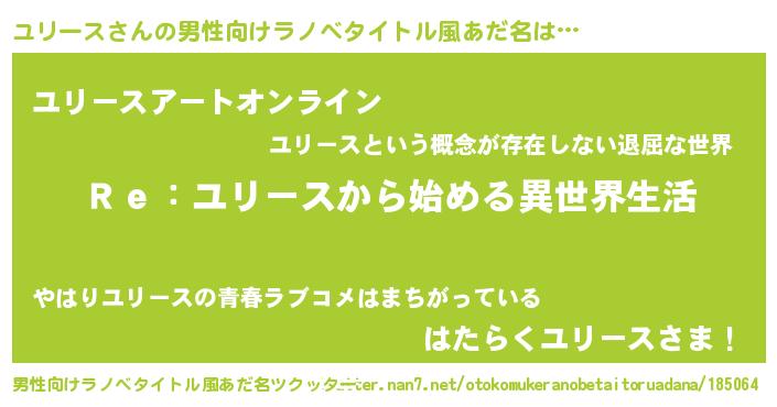 | 女子向けラノベタイトル風あだ名 | 『闇のユリース』『ユリースの雑貨屋さん』 |
