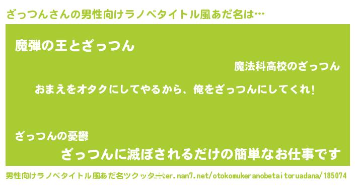 | 女子向けラノベタイトル風あだ名 | 『ざっつん夫妻のなれそめ』 |