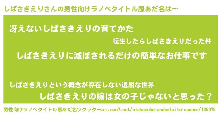 | 意味不明あだ名 | 『とにかく怪しいしばさきえり』 |