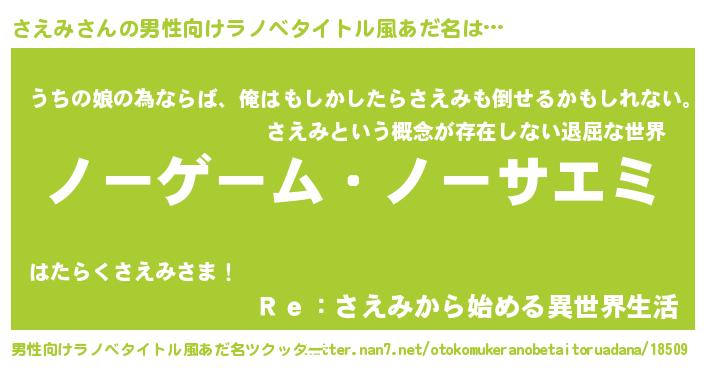 | 女子向けラノベタイトル風あだ名 | 『死神さえみの再婚』『さえみ伯爵の花嫁』 |