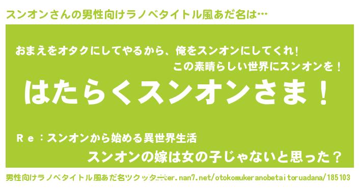 | 胡散臭い通販商品みたいなあだ名 | 『100人中100人が認めたマグネット磁石…その名も「スンオン」』 |