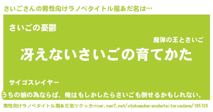 | ヒーロー風カッコイイあだ名 | 『スーパーサイゴ』『ウルトラさいごマン』 |