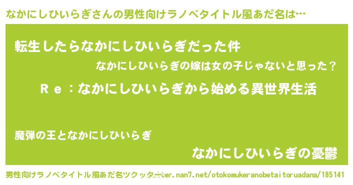 | 女子向けラノベタイトル風あだ名 | 『なかにしひいらぎストレイドッグス』 |