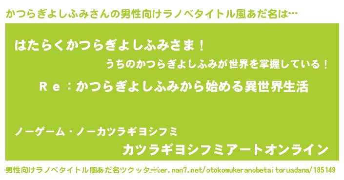 | 意味不明あだ名 | 『自称かつらぎよしふみ』 |