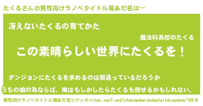 | 意味不明あだ名 | 『住所不定無職たくる(98歳)』『自称たくる』 |