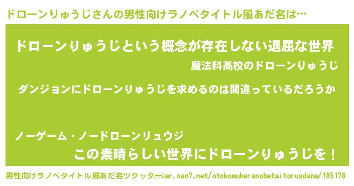 | 女子向けラノベタイトル風あだ名 | 『ドローンりゅうじは平凡を望む』 |