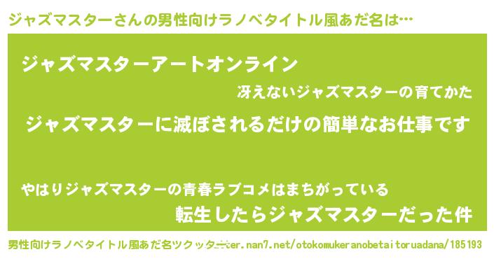 | 女子向けラノベタイトル風あだ名 | 『横柄ジャズマスターと宰相陛下』 |