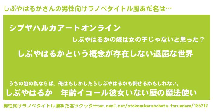 | 女子向けラノベタイトル風あだ名 | 『異世界で失敗しない100のしぶやはるか』 |