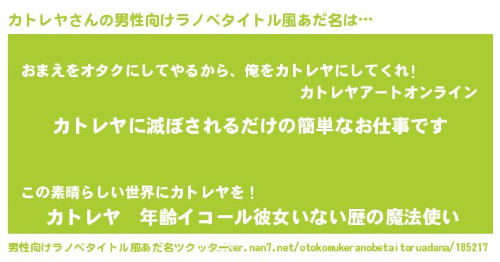 | ヒーロー風カッコイイあだ名 | 『天空の使者カトレヤ』『仮面カトダー』 |