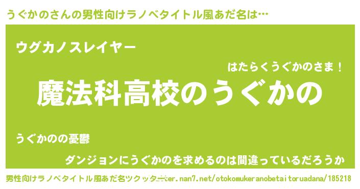 | ヒーロー風カッコイイあだ名 | 『ウルトラ戦士ウグカノ』『黄金騎士ウグ』 |