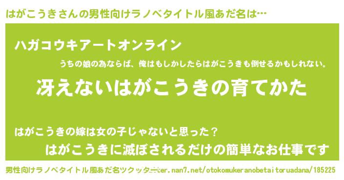 | 胡散臭い通販商品みたいなあだ名 | 『モテモテ間違いなし水晶球…その名も「はがこうき」』 |