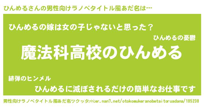 | ヒーロー風カッコイイあだ名 | 『超時空戦士ヒンメル』『炎刃騎士ヒン』 |