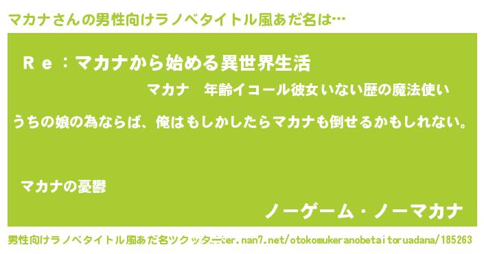 | 女子向けラノベタイトル風あだ名 | 『マカナの婚約者』『マカナ恋絵巻』 |