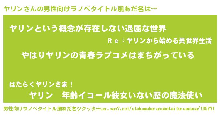 | 女子向けラノベタイトル風あだ名 | 『ヤリン伯爵の花嫁』『ヤリンの契約王妃』 |