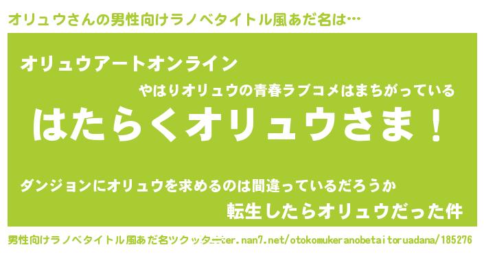 | 胡散臭い通販商品みたいなあだ名 | 『必ず成功する水晶球…その名も「オリュウ」』 |