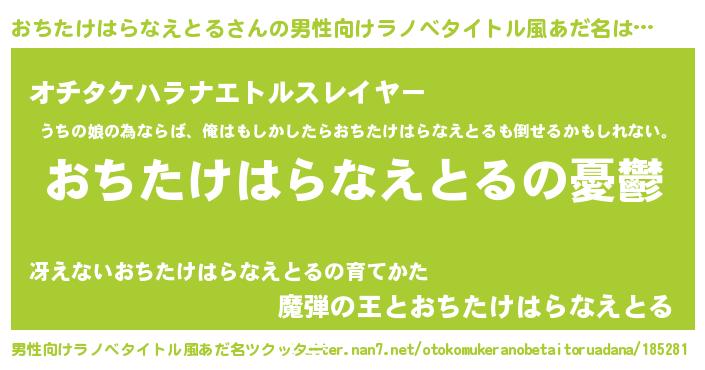 | ヒーロー風カッコイイあだ名 | 『スーパーオチタケハラナエトル』 |
